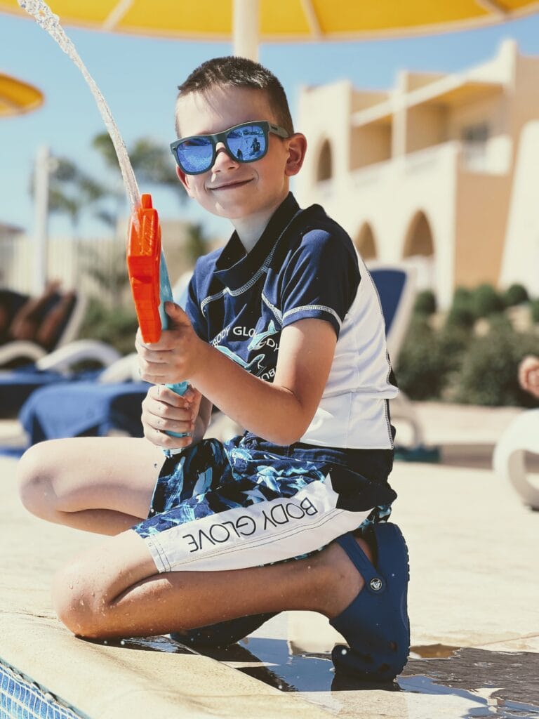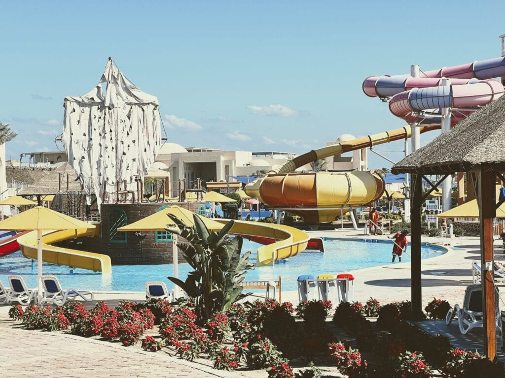 Plusy łamane na minusy – jedzenie.. Niby jest ok, niczego nie brakuje, ale nie robi wrażenia, jest po prostu wystarczająco – przeciętnie. Mało warzyw i owoców, brak soków wyciskanych, do których trochę przyzwyczaiły nas poprzednie hotele. Zdarzyło się nam zatrucie pokarmowe. Jednakże część jedzenia była naprawdę przepyszna – już tęsknię za falafelami, chlebkami naan i pierożkami arabskimi. Mam też mieszane uczucia co do aquaparku, ale dzieciaki bawiły się tam super, więc narzekać nie będę 🙂 Mini club – zdarzyło nam się, że był zamknięty w godzinach teoretycznego otwarcia co sprawiło Hugowi zawód. No i animacje – nie spodziewałam się powtórki z np. Bahia Principe Fantasia, gdzie było to na mega wysokim poziomie, no ale tu duuużo pozostawało do życzenia.