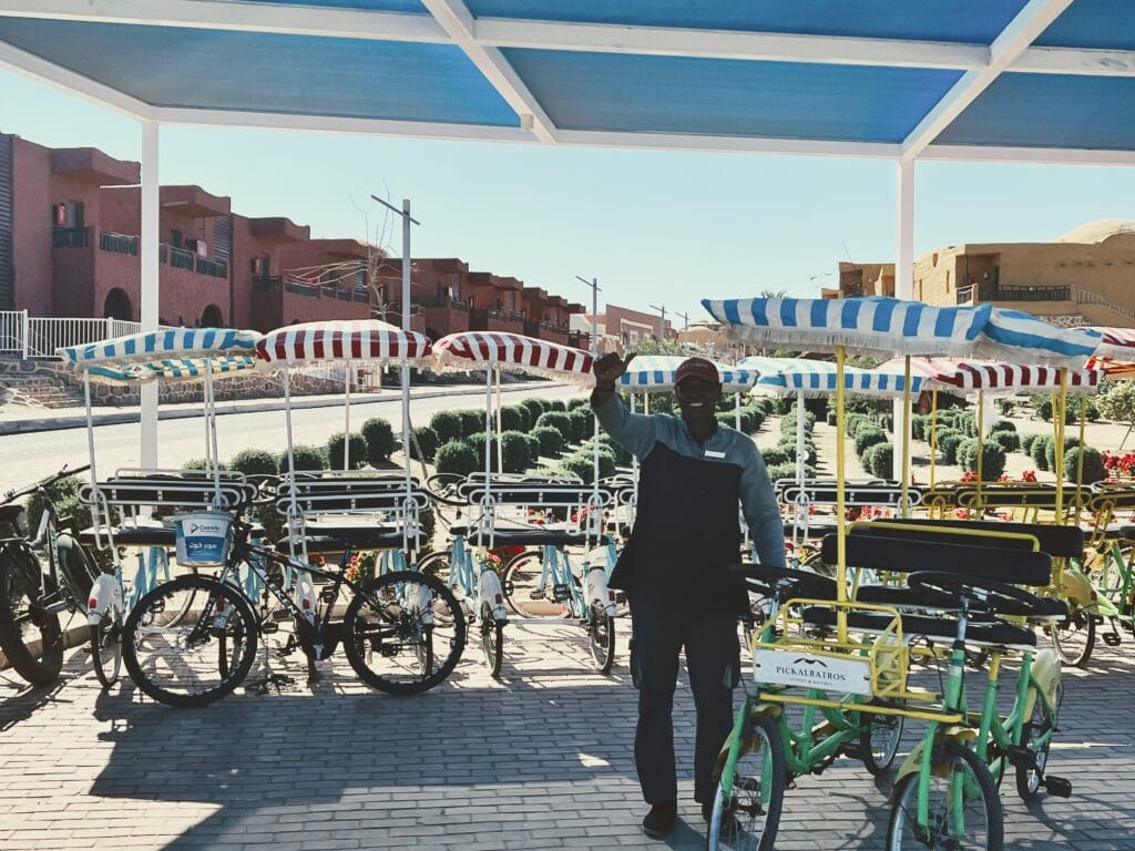 Całość jest ogromna! To rzeczywiście wakacyjna wioska, a jej wielkość może w pierwszej chwili przerażać. Jednak już po pierwszym dniu znamy swoje skróty, idąc promenadą można dojść od recepcji aż do restauracji Soprano. Ponadto na terenie obiektu krąży ciuchcia, autobusik a do dyspozycji gości są rowery. Nieco rozwalające się, ale w tym przypadku ma to swój urok 🙂